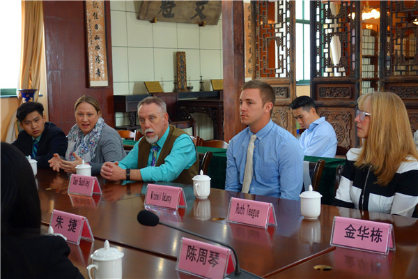 上图为美高校长团和学生进行交流和互动